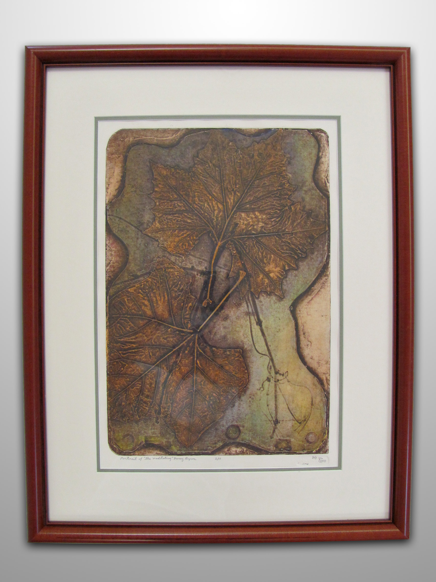 Glenn Eure was an old-school printmaker (meaning the artist has his hand in ink with every “original” print pulled as part of an edition).  Because of the possibilities it inspired, he was particularly drawn to the collagraph.   Collagraphs are original prints pulled by the artist from a collage created by him to give the imagery desired in the finished work.  The materials and techniques for developing plates are limited only by the artist’s imagination, and inking is done both in intaglio and relief for varied effects.